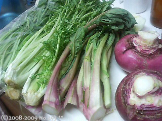 赤かぶ、水菜、壬生菜、小松菜、辛子菜などを購入。