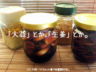 - 生姜の醤油漬け・・・煮物や生姜焼きに使えそう。