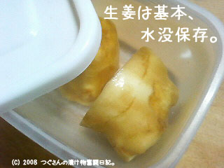 タッパーに生姜にかぶるくらいの水を張り、冷蔵庫に入れて保存しています。