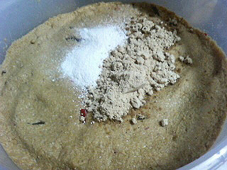 粉状にして入れておいたら、ぬか炊きにしても殻がジャリジャリいわないでしょ♪