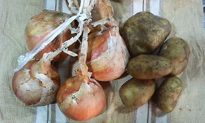 玉ねぎはひもで結わえてあって「ベランダで干しておくといいよ」と言われましたが、雨が降ったら水浸しになるので・・・