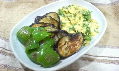余り手を掛ける元気もなかったので、パセリ入り卵焼きと焼野菜。