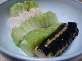 緑色の方を三五八漬けに、白い方はぬか漬けに。